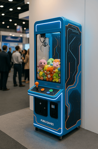 Além de quizzes, totens e arcades, também oferecemos o aluguel de máquinas de pelúcia e gruas de brindes personalizadas, com a identidade visual da sua marca.